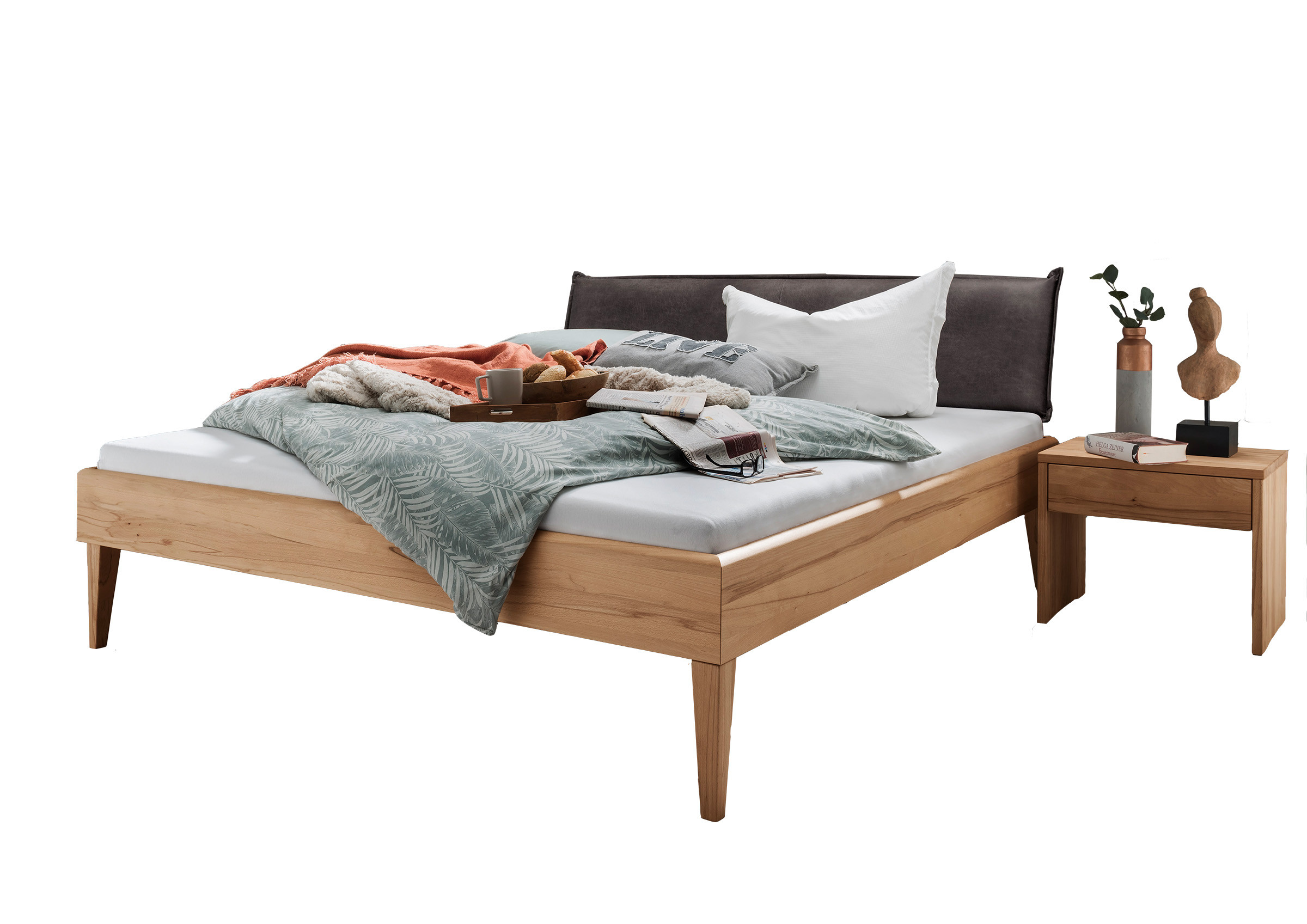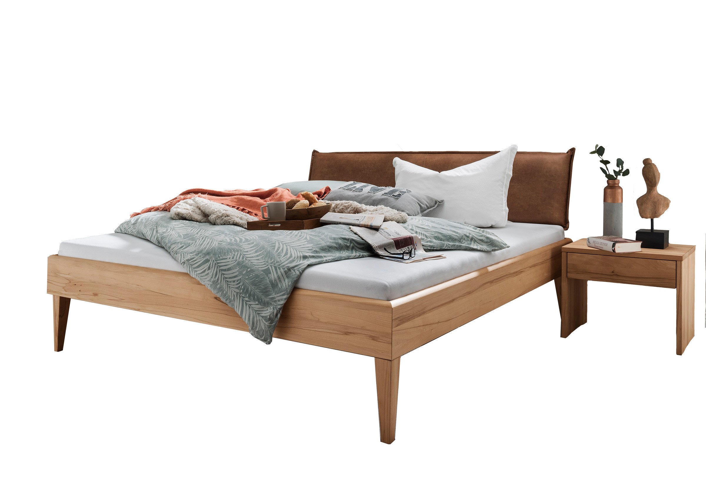 Die konischen Bettfüße unterstreichen die elegante Linienführung und sorgen für eine leichte, moderne Optik. Gleichzeitig bieten sie eine stabile Basis und fügen sich dezent in das Gesamtbild ein. Die Kombination aus natürlichem Holz und sanft gerundeten Formen macht dieses Bett zu einem stilvollen Mittelpunkt Ihres Schlafraums. Das Kopfteil ist in mehreren Ausführungen erhältlich.