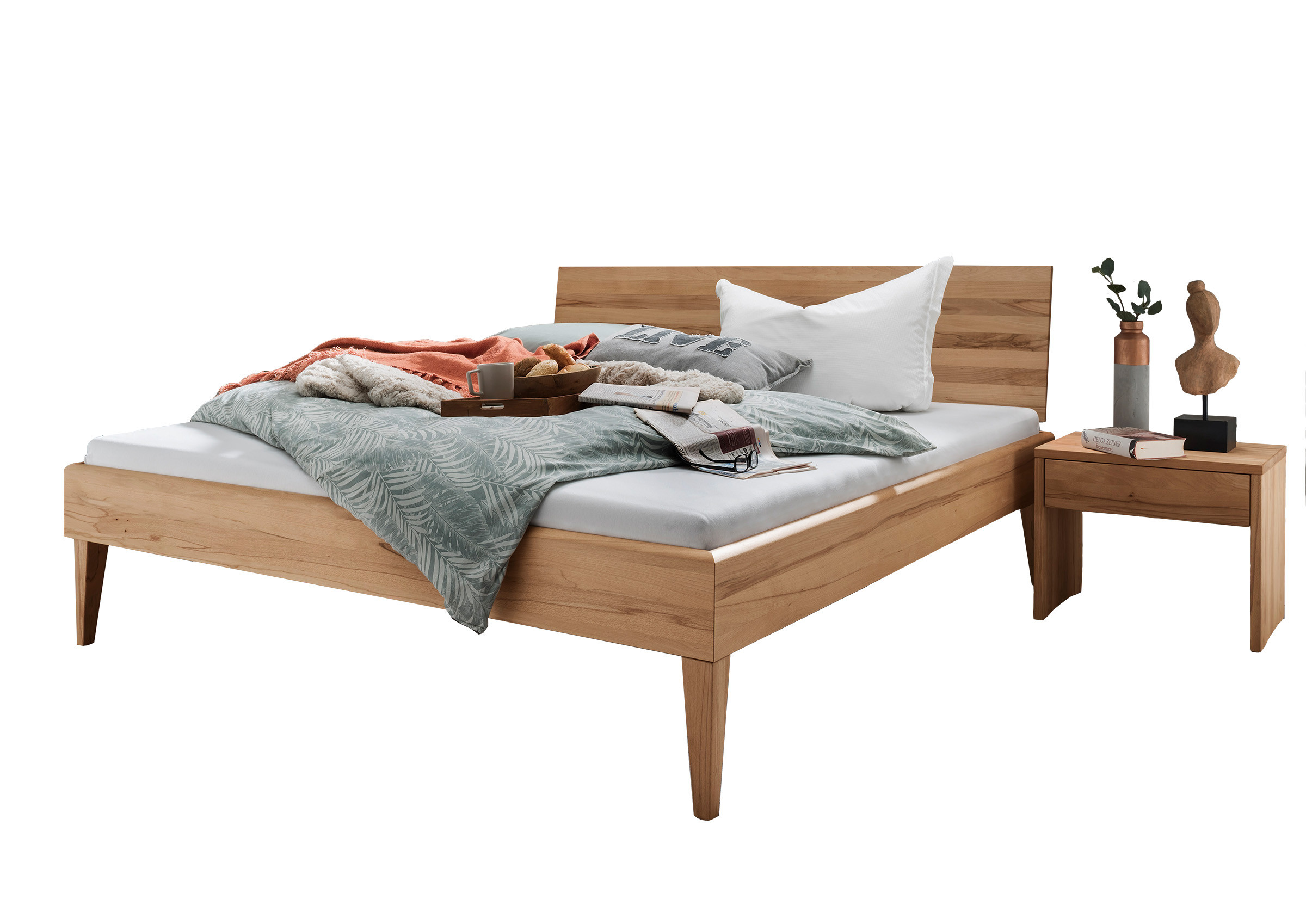 Dieses Bettgestell aus massivem Kernbuchenholz überzeugt durch sein warmes, lebendiges Aussehen und die hochwertige Verarbeitung. Die stark gesofteten Außenkanten des Bettrahmens verleihen dem Design eine besonders harmonische und sanfte Ausstrahlung – ideal für ein Schlafzimmer, das Ruhe und Geborgenheit ausstrahlen soll.